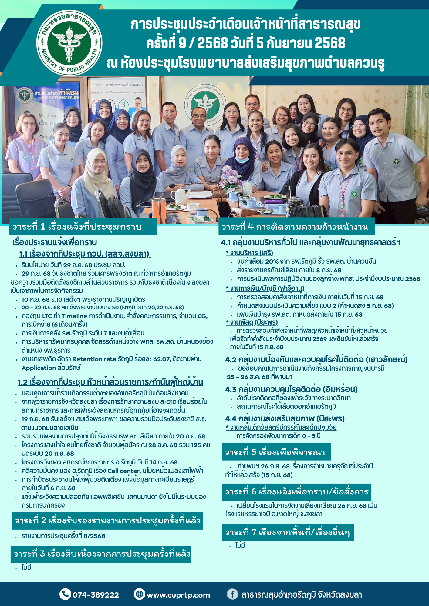 สรุปวาระการประชุมประจำเดือน ก.ย.68